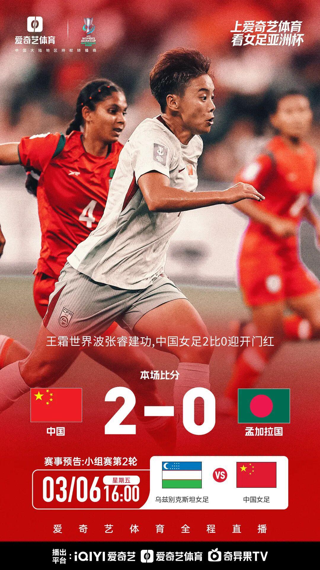 开云APP-开门红!中国女足2比0孟加拉国:控球率47% 积分榜位居次席